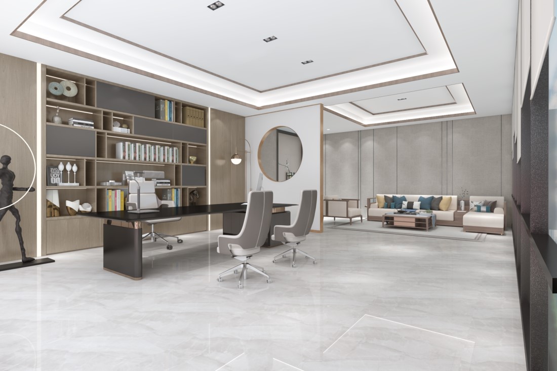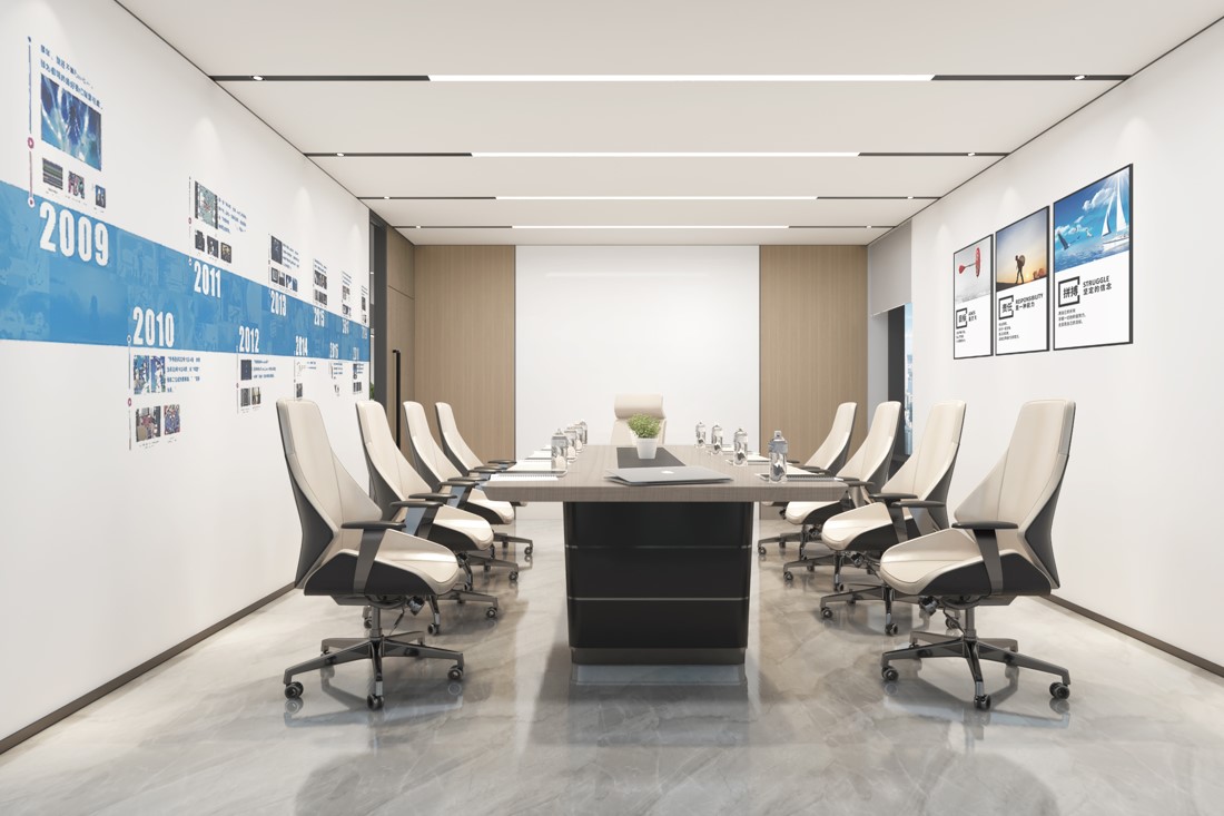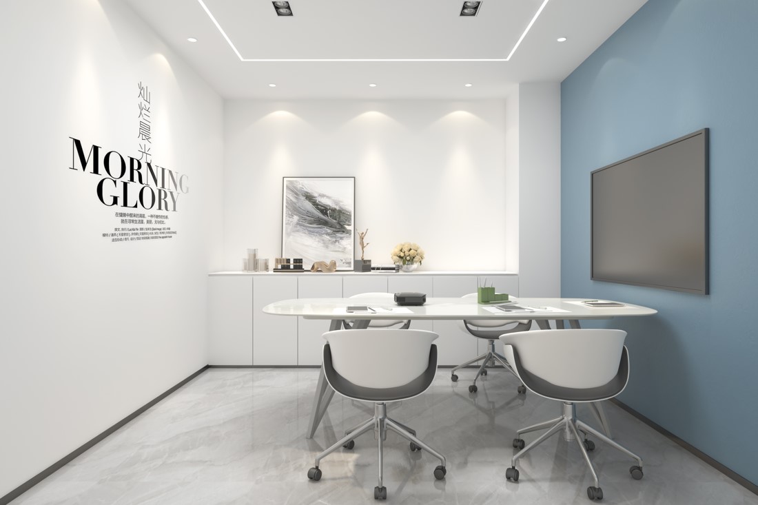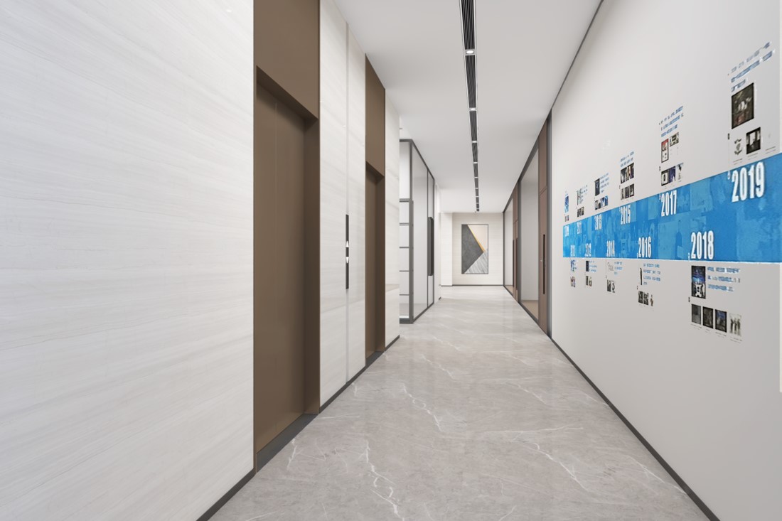 设计介绍:主要展示前台、洽谈区、走廊、贵宾区、会议室、办公区等各个区域办公室装修效果图,设计师们根据不同楼层采用采取不同办公室装修风格,现代简约、庄重凝练两种风格相互融合,主要以白色为主,更符合的公司形象。