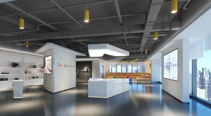 与一般的展厅相比,要采用科幻风格,这种展厅的装修空间更加紧凑,更加炫酷,展厅区域一定要大,办公区域和展厅区域风格一定要相融合。