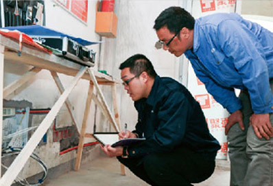 由公司各级管理层,对在建工地进行地毯式。不定期巡查,并随机访业主。